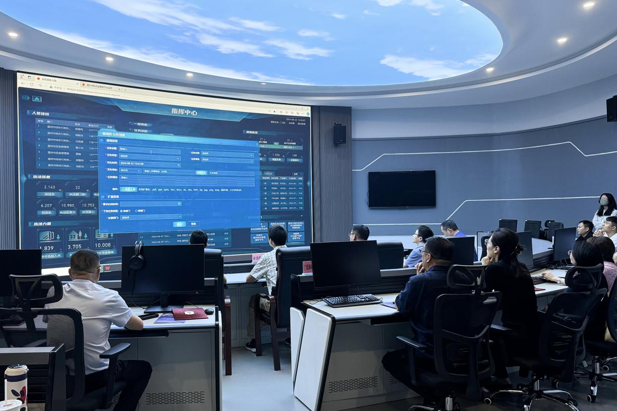 “蓝眼睛”观察员观摩温州市行政执法指挥中心。