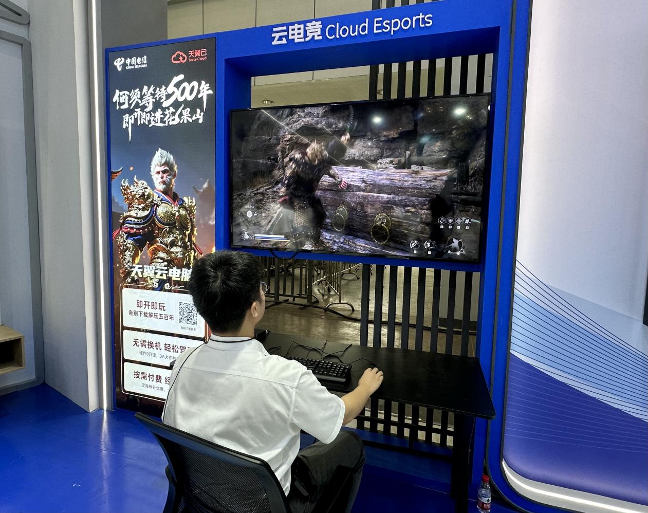 在云竞技展区,年轻人们“激战正酣”,屏幕上是最近大热的国产3A大作《黑神话:悟空》。因为对电脑配置要求较高,让很多人对这款网红游戏“望而却步”,中国电信依托“边缘云”为底座,提供超高配置的算力环境,将游戏运行在云端服务器上,帮大家扫平了“西行第一难”。“不用升级电脑配置,接入电信云竞技就能玩,画面还更流畅,果然是‘即开即进花果山’。”这种更经济、高效的游戏服务模式获得了很多玩家的点赞。(王薇/文 邱巧怡/图)