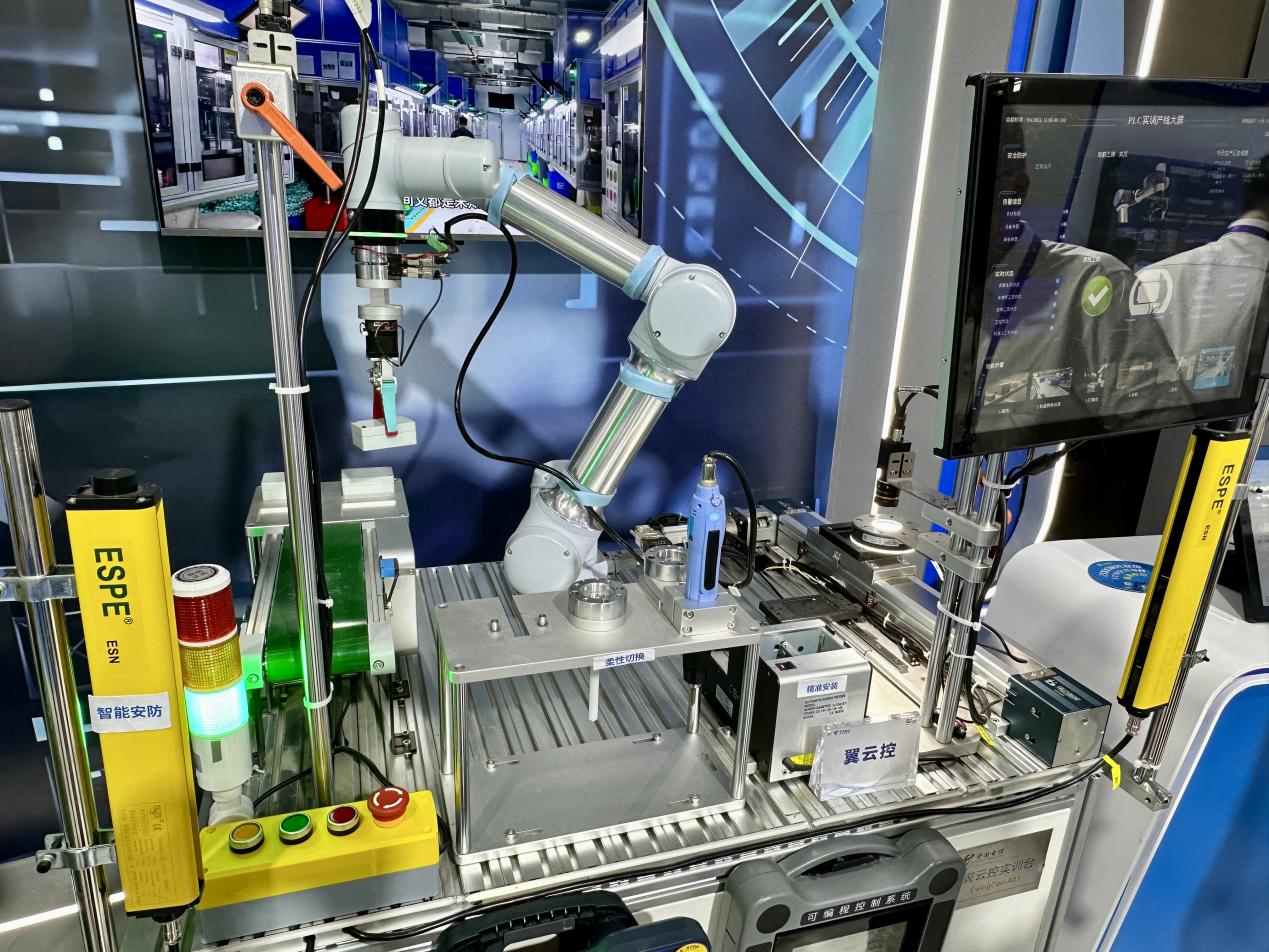 快速取件,熟练更换夹具,精准完成打螺丝、滴胶工序,通过AI全方位扫描完成质检,根据质检结果进行准确分拣……在“翼云控”展示区,机械臂正用“丝滑”无卡顿的操作模拟经“翼云控”柔性化升级改造后,无人工厂的生产过程。“我们的‘翼云控’通过对PLC软硬解耦,解决‘卡脖子’问题,实现工业设备融云融AI,柔性化生产,目前可替代50%的工业总线。”中国电信的工程师介绍说,中国电信通过“翼云采+云+轻量化应用+行业深度定制应用”,实现设备数据的实时采集和柔性控制,可大幅降低中小企业智改成本,终端兼容数百种工业协议,可实现生产数据实时精准采集。截至目前,中国电信已有超百个覆盖行业的成功案例,累计打造超1500个行业标杆项目。