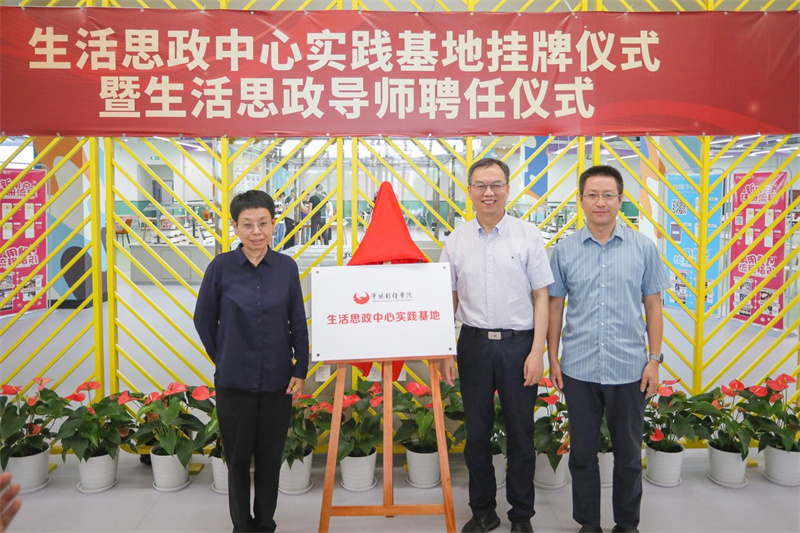 当天宁波财经学院还举行了生活思政中心实践基地挂牌仪式暨生活思政导师聘任仪式,党委书记王春潮为实践中心揭牌。一批优秀的校工被聘任为生活思政导师,包括厨师、保安、校医及宿管阿姨等。他们将在未来的日子里,结合自身工作特点,分场景、分时段为大学生们讲授生活思政课程,并积极参与各类大学生社团活动的指导。