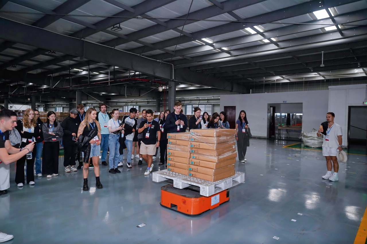 在宁波梅山岛保税港区,芬兰大学生们被港区繁忙的物流作业景象所震撼,纷纷发出感慨。在港区的龙飞物流,双边师生一同参观了公司智能化的自动仓储系统,观摩了移动机器人AMR智能化作业场景,深刻感受了人工智能在推动物流企业转型和数字经济发展中发挥的重要作用。“想到我们未来也有机会来此工作,投身建设贸易强国的伟大事业,感到特别自豪和憧憬。”国贸专业大三学生施沐涵激动地说。