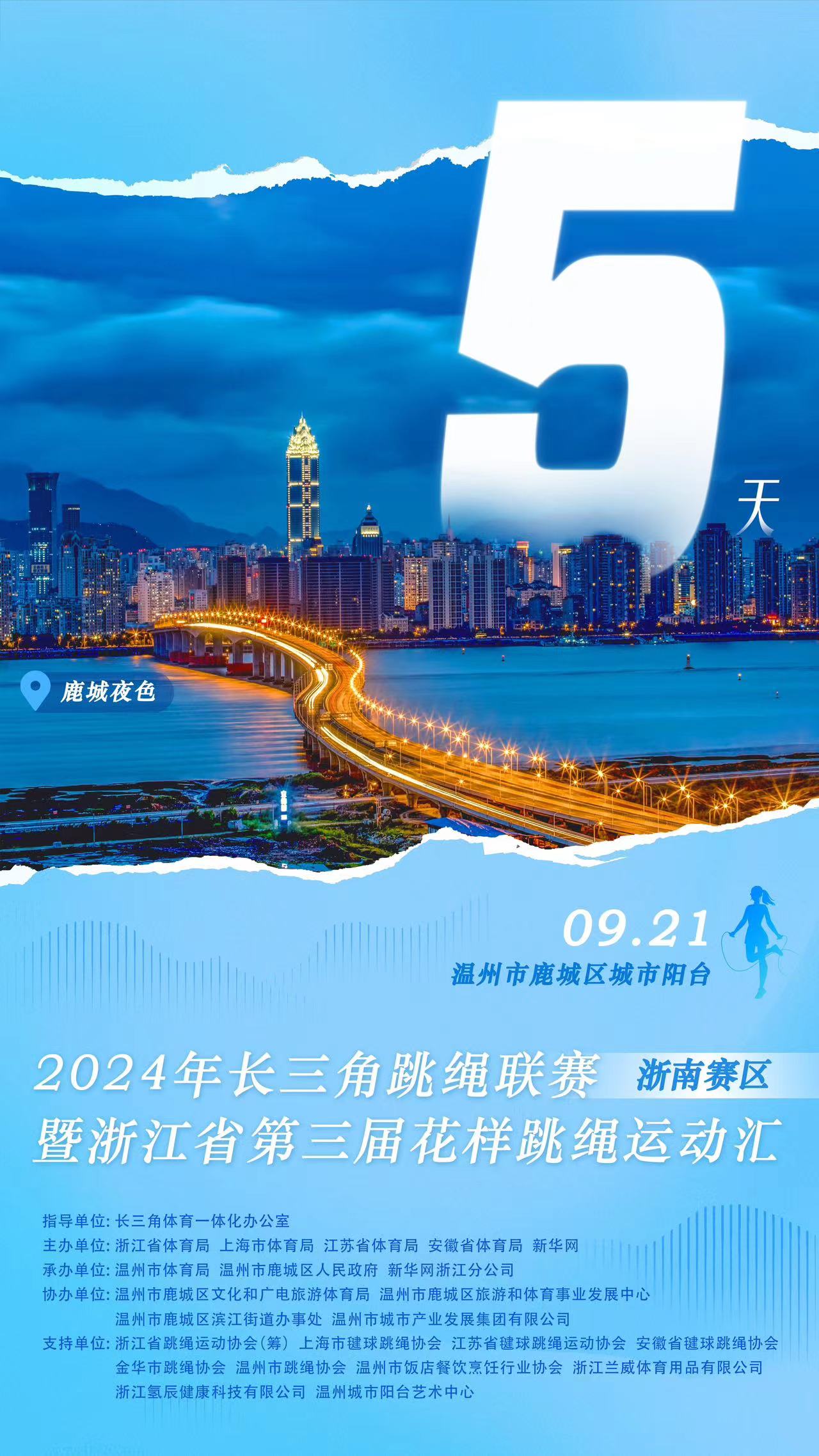 活力鹿城,绳舞飞扬!9月21日,温州鹿城诚邀您共赴2024年长三角跳绳联赛暨浙江省第三届花样跳绳运动汇(浙南赛区),让我们在绳的海洋中释放无限激情!