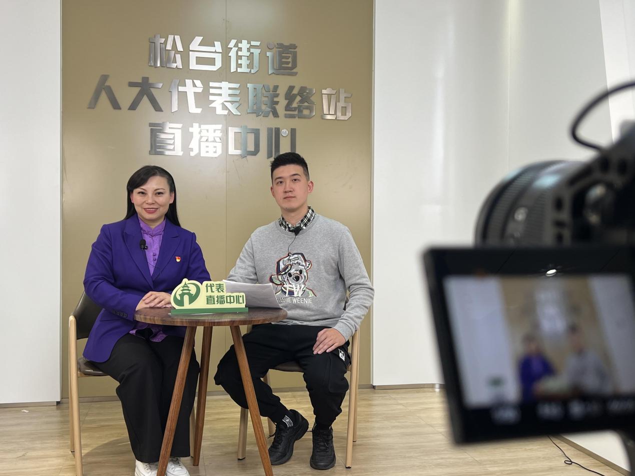 为突破时间和空间的限制,松台街道于2022年创新推出“人大代表直播中心”,变“面对面”宣讲为“屏对屏”宣讲,从民众关注热议的话题知识出发,延伸宣讲“触角”,增强传播实效。