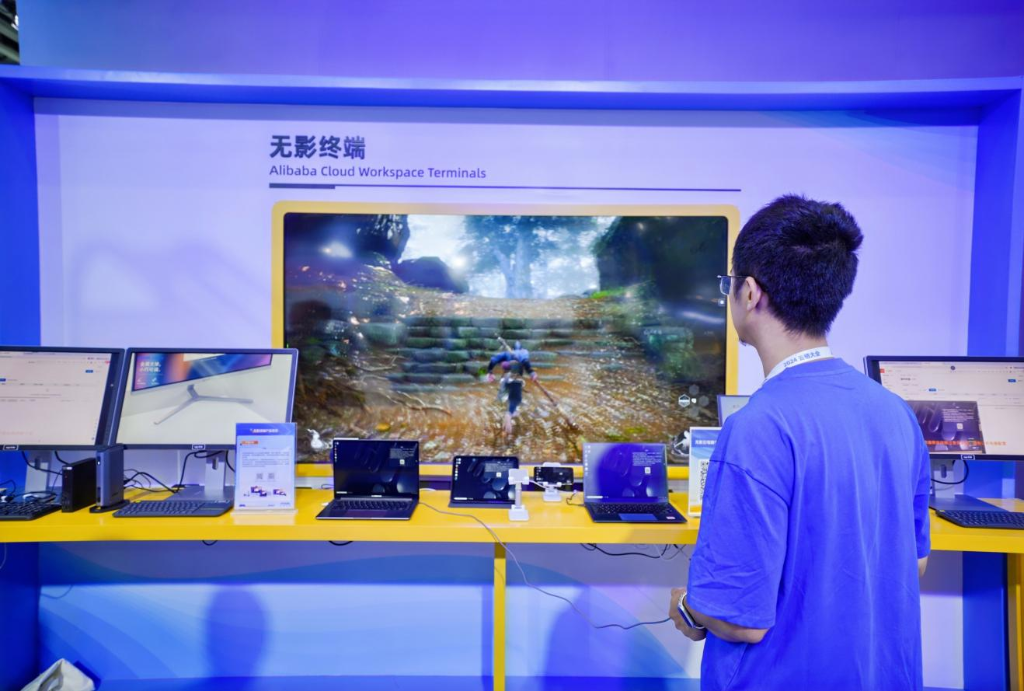 在云栖大会的现场,无影云电脑的展示区吸引了众多参观者的目光。