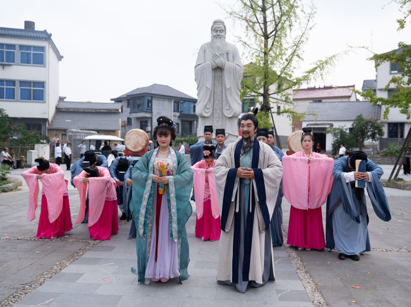 当天,沟溪村各处活动精彩纷呈。孔子文化广场上,30余名来自礼贤小学沟溪校区的一年级新生面向孔子像整齐排列,庄严而有序地参加“开蒙礼”;村集体向考上双一流大学的新生家庭发放奖学金,鼓励学子发奋图强、立志成才;微型南孔剧中,演员衣袂翩跹、宋韵流淌;孔子码头边的南孔市集,游客络绎不绝,在南孔文化系列文创展示、西安高腔、竹编等民俗中感受传统文化的魅力。