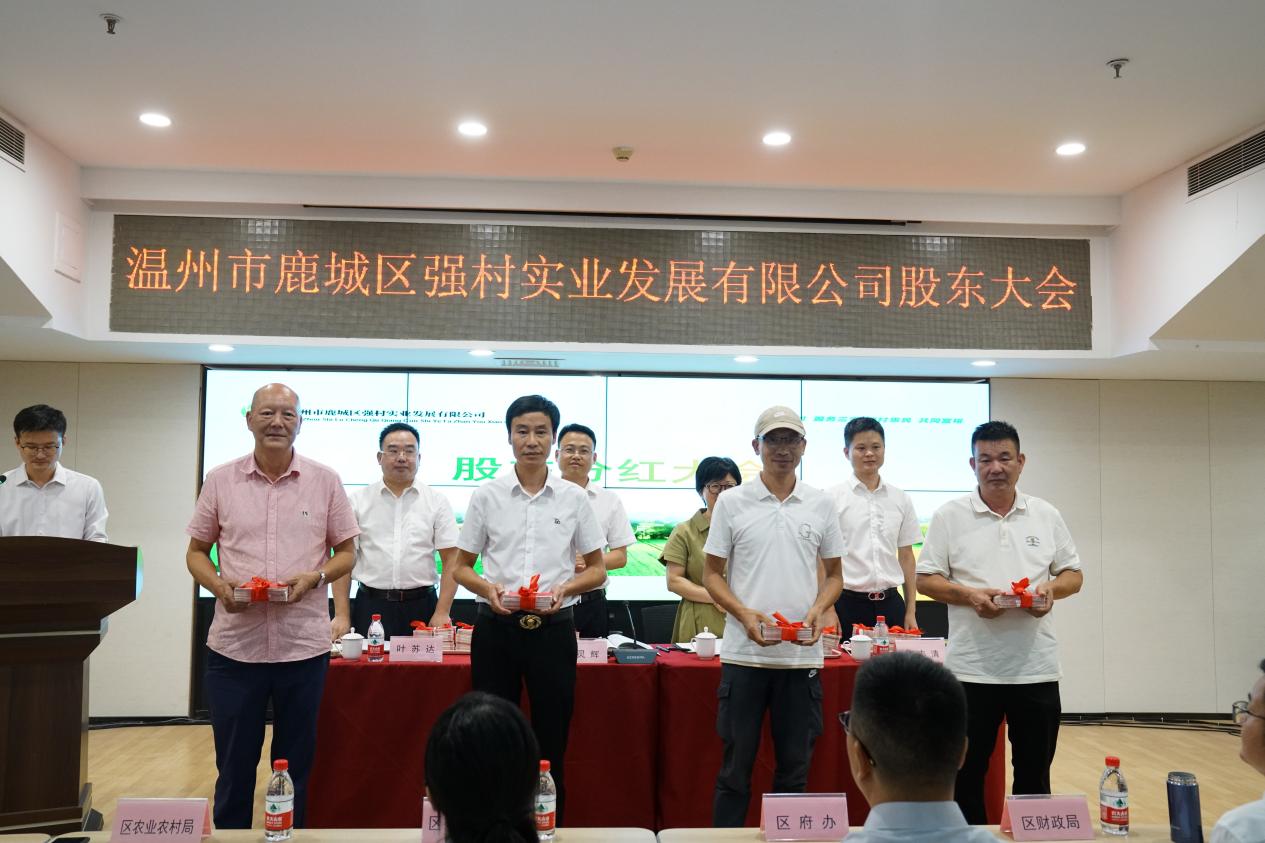 “藤桥镇潮济村3.5万元,山福镇夏嘉村3.5万元,仰义街道钟山村3.5万元……”9月29日,浙江省温州市鹿城区强村实业发展有限公司(以下简称“鹿城区强村公司”)举行2024年度第一次股东大会,各村股份经济合作社以公司“股东”身份参会,共同分享强村发展的成果。