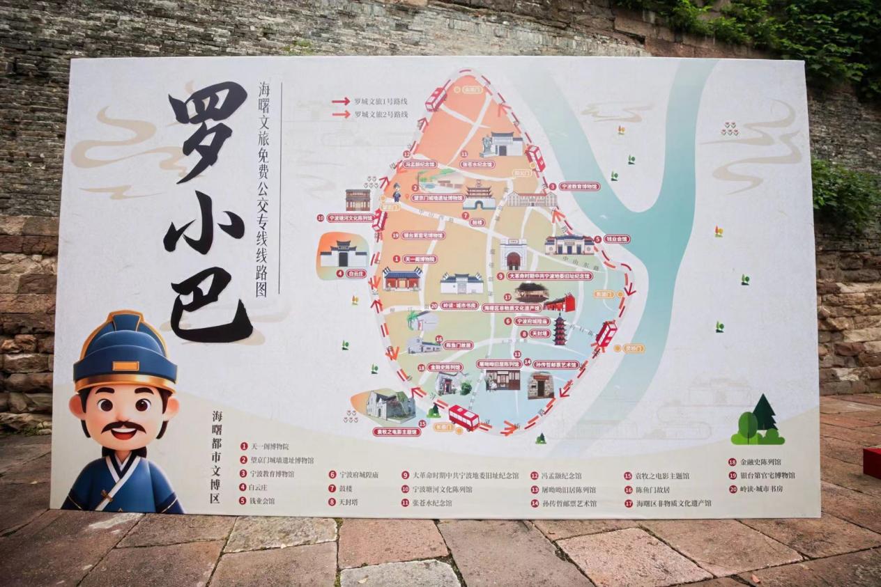 国庆假期期间,海曙区还推出“罗小巴”环线集章活动。市民游客可在“罗小巴”上领取旅游折页,并到线路经过的鼓楼、天一阁、城隍庙、望京门城墙遗址博物馆等点位盖章,集齐印章后可获得“罗小巴”周边礼品。