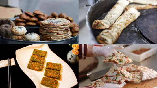 衢州的小吃也是琳琅满目,各具特色。走在石板路上,烤饼的香气悄然袭来,金黄酥脆的外皮下,梅干菜与鲜肉完美融合,让人忍不住大快朵颐;“卷王”搁袋饼则是早餐界的“扛把子”;小巧精致的油炸果,外皮金黄酥脆,内里软糯香甜;龙游发糕、铜锣糕等点心,更是以软糯不粘口的特点,赢得了众多食客的喜爱。