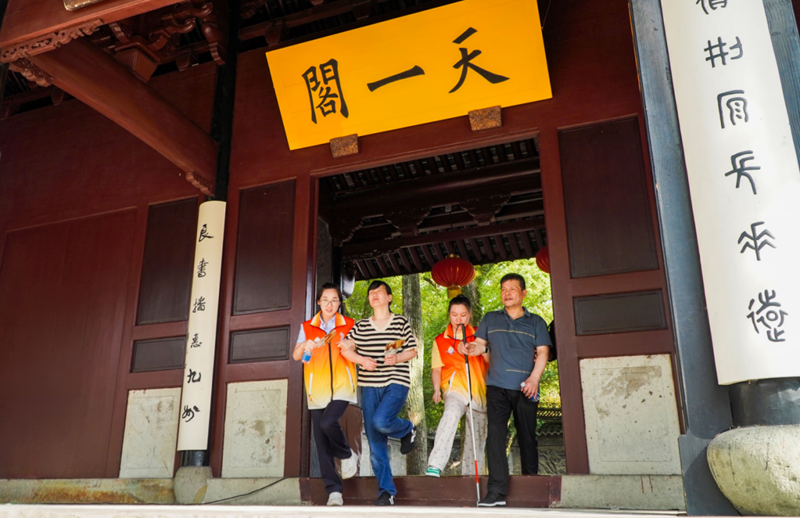 来自宁波81890光明俱乐部的盲人代表借助车上配备的无障碍设施,顺利地乘上了“罗小巴”。从西门口站到银杏四季站,盲人代表们在志愿者陪同和讲解下,触摸望京门城墙遗址博物馆里的历史痕迹,感受天一阁·月湖景区里的文化韵味,领略宁波历史根脉、千年府城核心——罗城的发展故事。