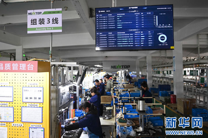 2024年3月18日,在位于嘉兴市的浙江善拓机械有限公司内,数字屏幕实时呈现生产进度管理信息。新华社记者 黄宗治 摄