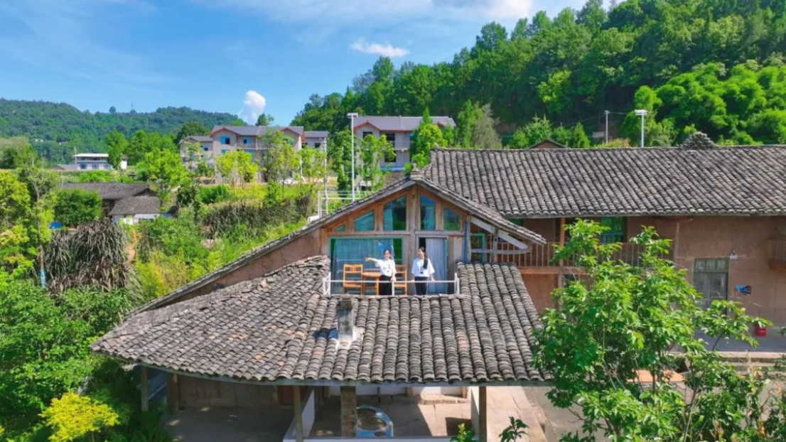 走进四川省巴中市平昌县驷马镇双城村,映入眼帘的是“巴山美村”几个大字。放眼望去,一栋栋具有川东北风格的乡村民宿错落有致。“屋舍俨然,有良田美池桑竹之属。阡陌交通,鸡犬相闻……”游客徜徉其间,仿佛进入了陶渊明笔下的“桃花源”。