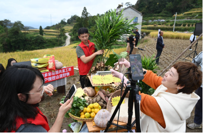 侨界热心人士,不仅活跃在农业种植一线,在线上直播平台也有他们的身影。10月上旬,泳溪乡侨眷、浙江华顶国际旅行社总经理陈丽娟来到泳溪乡北山村鎏金梯田开启公益助农销售直播。在3天的直播周期,其累计售出泳溪香米3000斤,成交生姜、番薯等优质农产品1200多单。直播结束后仍接到源源不断的补货申请订单,60多位村民的土货被销售一空。(周璐静 朱志强/文 天台县坦头镇人民政府/供图)