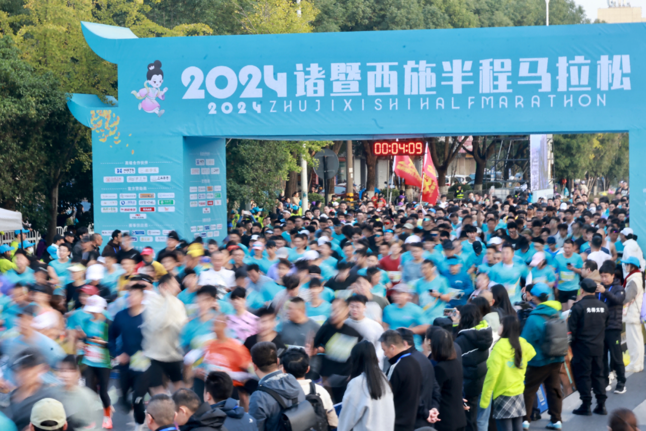 2024诸暨西施半程马拉松是诸暨体育赋能发展的一个缩影。近年来,诸暨每年举办市级以上全民健身活动超300场次、村级活动超1000场次;相继举办了CBA篮球联赛、村BA、环法自行车赛等一系列上规模、有质量、树标杆的体育盛事。以赛引流,变体育“流量”为文旅“留量”,2024年1-10月,诸暨市共接待游客1202.9万人次,同比增长14.75%,排名位列绍兴市第1位。其中,接待过夜游游客631.4万人次,同比增长26.71%。