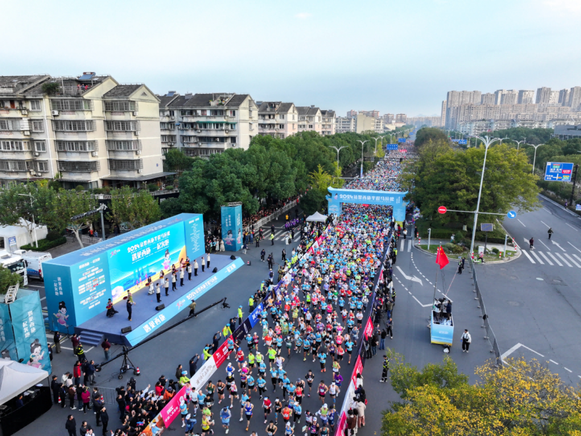 2024诸暨西施半程马拉松设有半马(21.0975km)、欢乐跑(5.2km)两个组别,吸引了美国、韩国、加拿大等21个国家和地区选手参赛。在16000名参赛选手中,78.3%来自浙江全省。国家级马拉松运动员李芷萱、中国马拉松运动员聂登宇,网红跑者沈乌贼、400李时荣、山居老虎也慕名而来。“我们以百分百的诚意、实打实的服务,让走进诸暨的跑友感受到这座城市的温情和礼遇。”诸暨市委常委、副市长高嵩说。