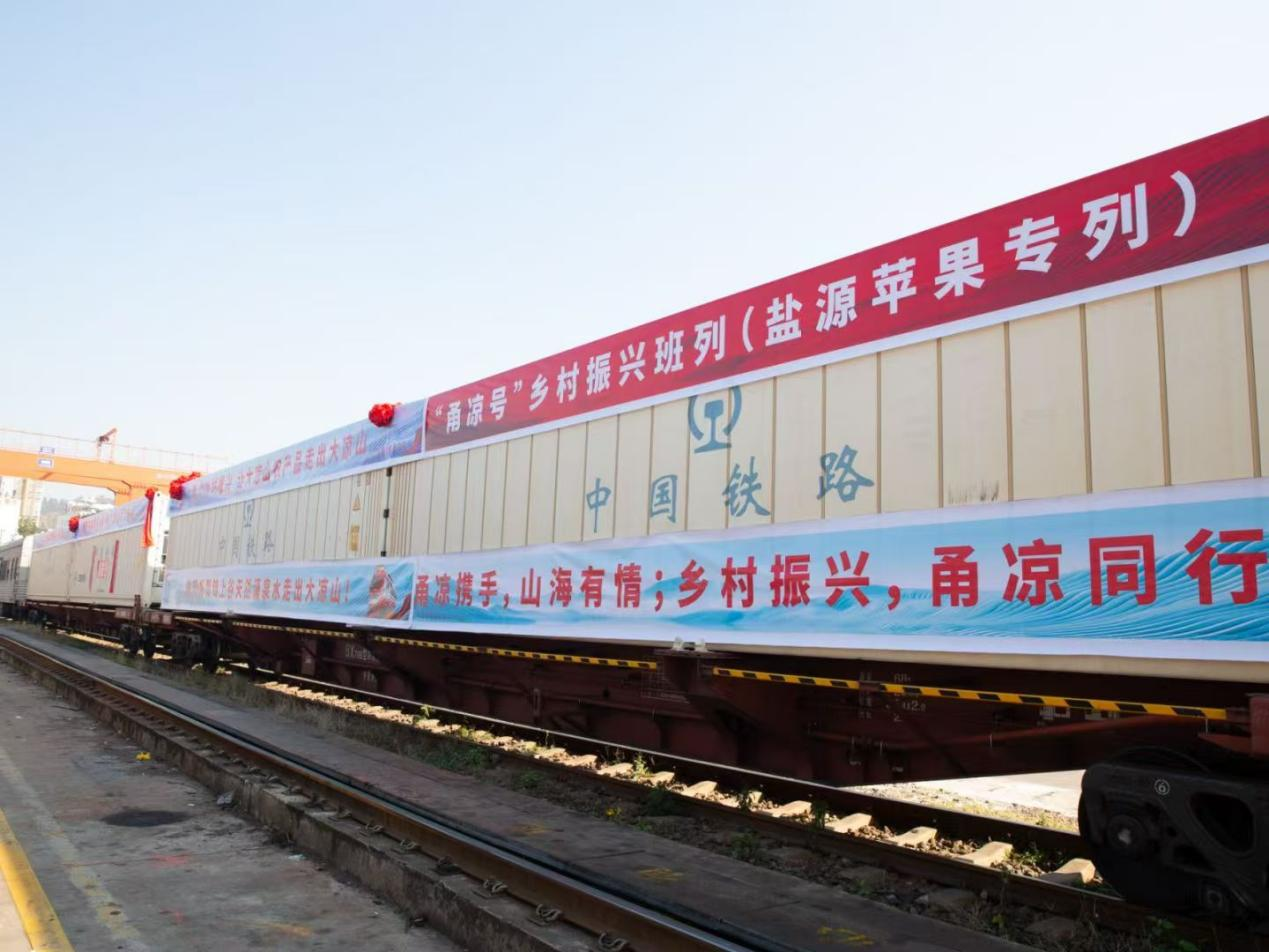 甬凉号乡村振兴班列(盐源苹果专列)由浙江省驻凉山帮扶工作队、中铁特货物流股份有限公司成都分公司、凉山州发展(控股)集团有限责任公司共同谋划,多方协调,旨在打通凉山州大宗农特产品铁路运输渠道,让凉山州更多优质的农特产品可以出山达海,让更多消费者可以以更优惠的价格买到凉山产品,助力农民增产增收。