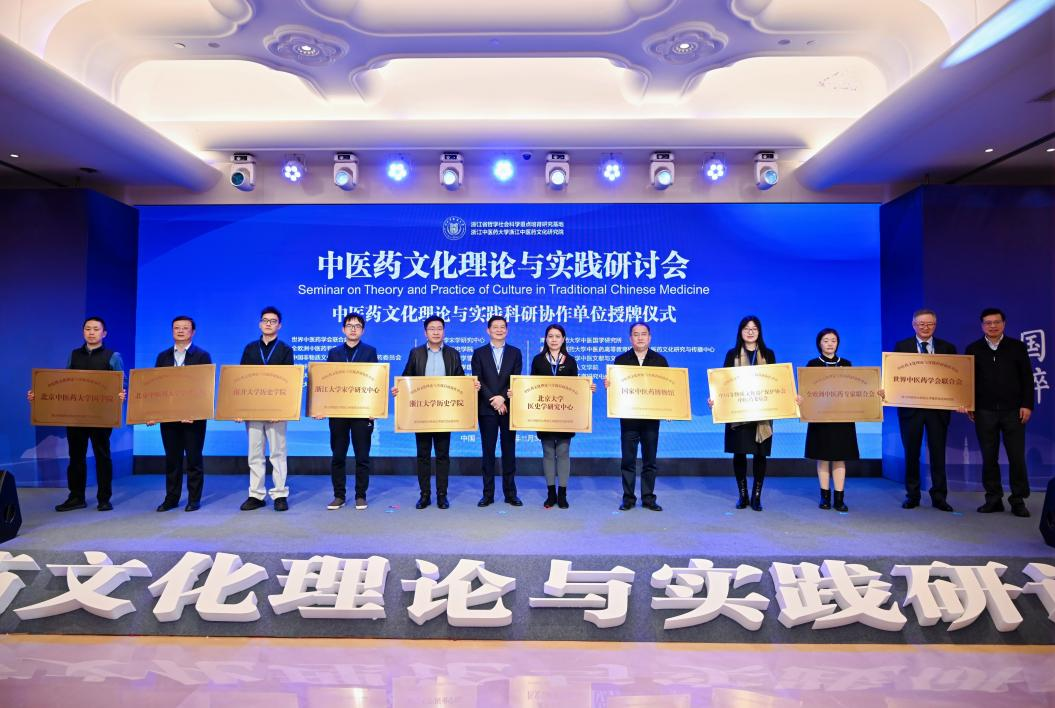 现场,《新时代弘扬中医药文化浙江方案》、《中医药文化理论与实践》创刊号(第一辑)发布;“新时代中医药文化理论与实践科研协作单位”授牌仪式、“中医药大健康产业联盟单位”授牌仪式、浙江中医药文化研究院学术委员会增补委员聘书颁发仪式举行。其中,《中医药文化理论与实践》由浙江省重要的中医药文化学术研究机构——浙江中医药文化研究院创办,是浙江中医药大学中医药与哲学社会科学交融的学术刊物,也是浙江中医药文化研究领域的专刊。该辑刊将发挥学术引领作用,做精做强中医药文化研究,助力赓续中医药文脉传承创新发展。