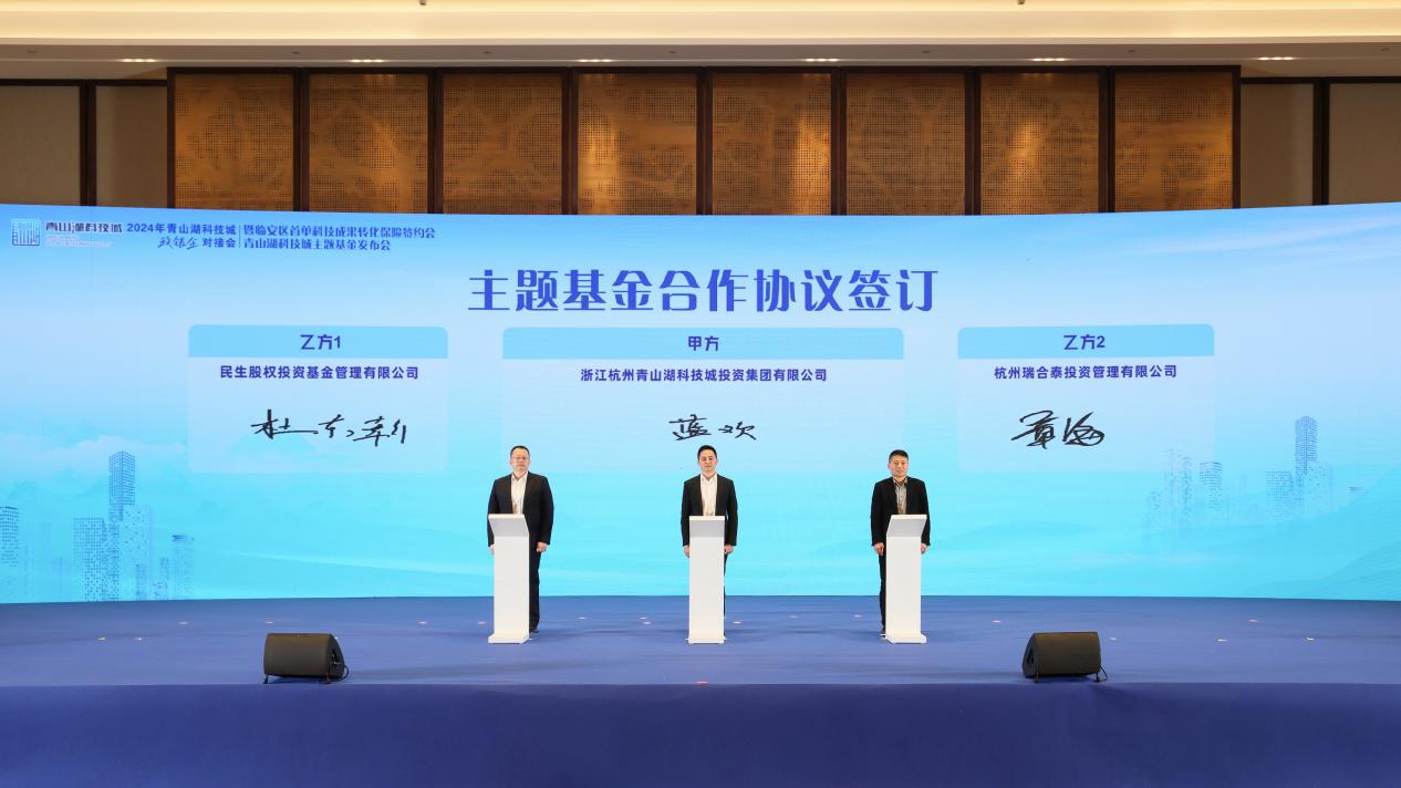 近日,2024年青山湖科技城政银企对接会暨临安区首单科技成果转化保险签约会、青山湖科技城主题基金发布会在杭州青山湖畔举行。会上发布青山湖科技城产业发展主题基金(以下简称“主题基金”)。