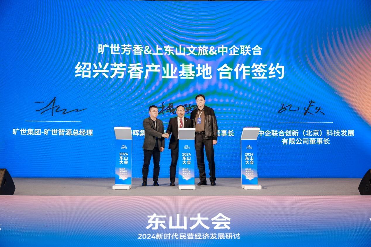 本次东山大会借思想交锋、经验分享、合作签约等多种形式,为民营经济注入发展源泉。六组签约横跨文化传承研究、文旅产业融合、文化品牌推广、产业金融创新、企业家心理建设、艺术文旅发展等多个维度。以绍兴芳香产业基地合作签约、湘醴窑绍兴基地签约为例,两个项目将以东山为媒,提升文商旅融合成效。