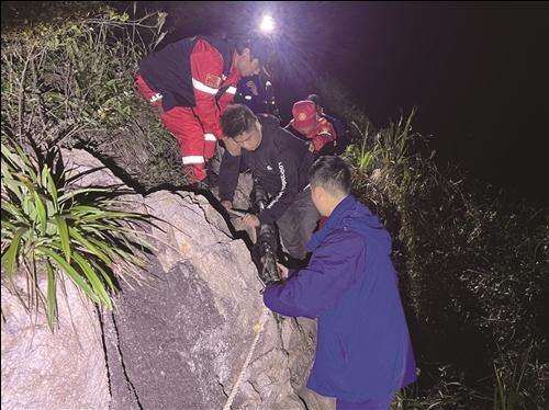 接到救援任务后,温岭市松门镇应急消防救援队和温岭市海安救援队相继出动人员赶往大岩山参加救援。由于水桶岙沙滩位置信号不好,加上天黑,消防员和海安救援队在山里寻找了个把小时,终于在大岩山山道的最东侧找到了受伤的小徐,此时已是晚上8时左右。