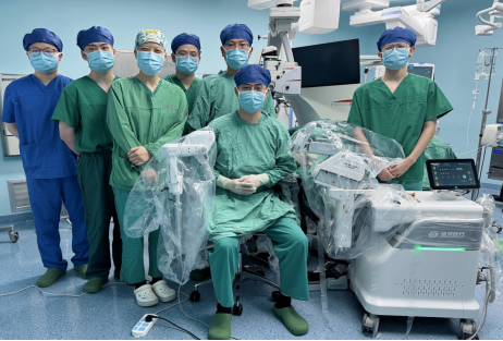 “高精度柔性眼科机器人及远程手术平台”基于人工智能技术、5G网络传输技术、3D显示手术影像技术和高运动精度机器人技术。其中眼科手术机器人依托自主开发的控制算法设计,有效滤除手部抖动,极大地帮助医生突破人手先天存在约100微米的无法克服的生理抖动的极限,实现国际领先的3微米运动精度、15毫秒实时响应,成为精准眼科手术的新标杆。