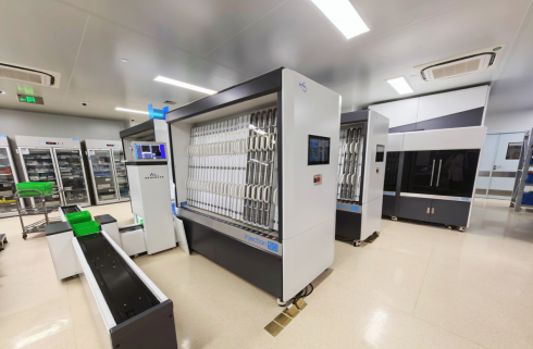 走进浙江省人民医院静配中心,可以看到一套随时运作的智能一体化设备,智能溶媒一体库、嵌入式全自动贴签机、全自动针剂摆药系统、自动出筐系统、自动收筐系统、AI视觉智能自检系统、异常/正常分流系统,七大场景全流程无缝衔接,实现药品调剂、排药复核、入仓复核、成品分拣的无人作业。“我们全天候全时段保障临床的用药需求,同时实现药品全流程追溯、药品批号及效期的闭环管理,人力成本节约25%,药品破损率降低80%,差错率降低80%。”浙江省人民医院药学部主任黄萍说。