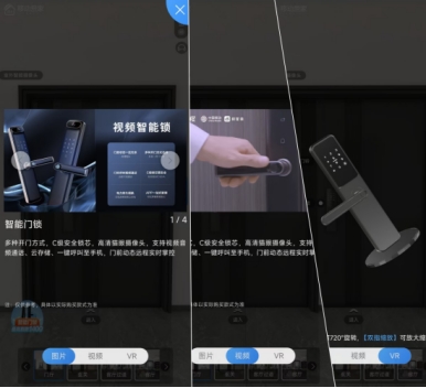 用户在VR体验馆中将体验真实比例的1:1家庭空间。这种沉浸式体验让用户可以更加直观地了解每个产品的特点和使用方法。用户只需轻点空间中的不同产品,即可获取详尽的产品信息,包括图文说明、视频展示以及可自由交互旋转的3D增强现实模型。以“智能门锁”为例,用户可以清晰地看到门锁的每一个细节,了解其安全性和便利性。
