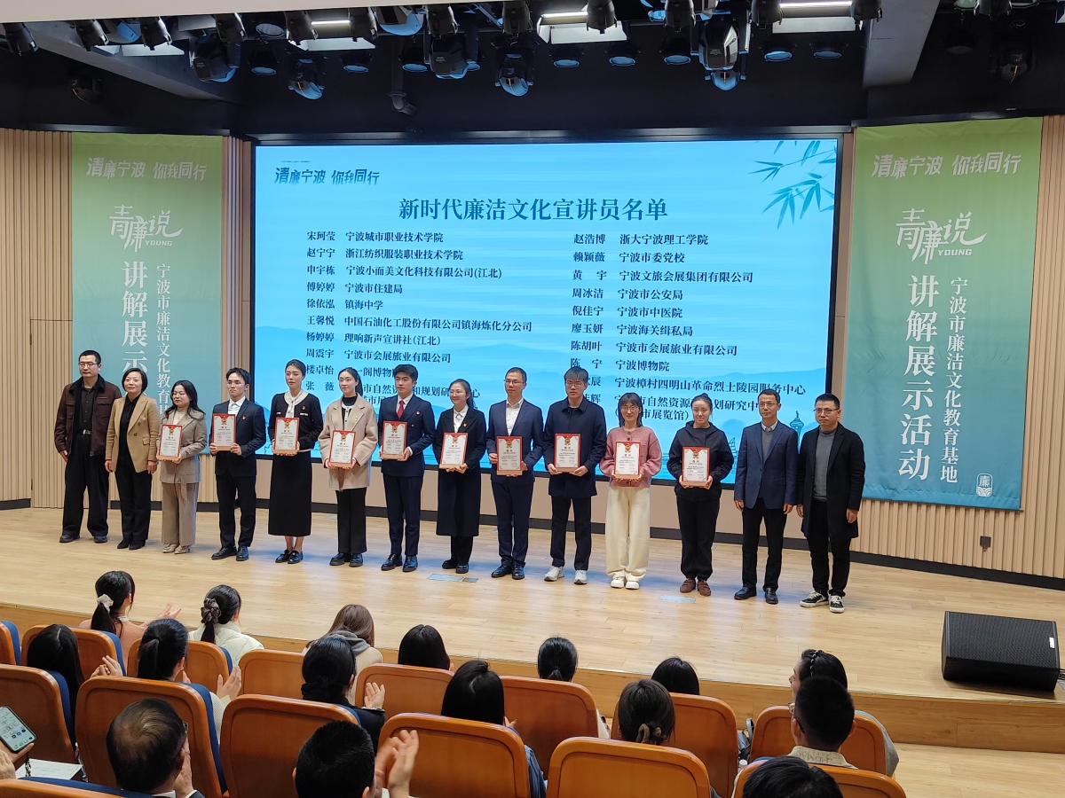 20名青年代表被聘为“宁波市新时代廉洁文化宣讲员”。