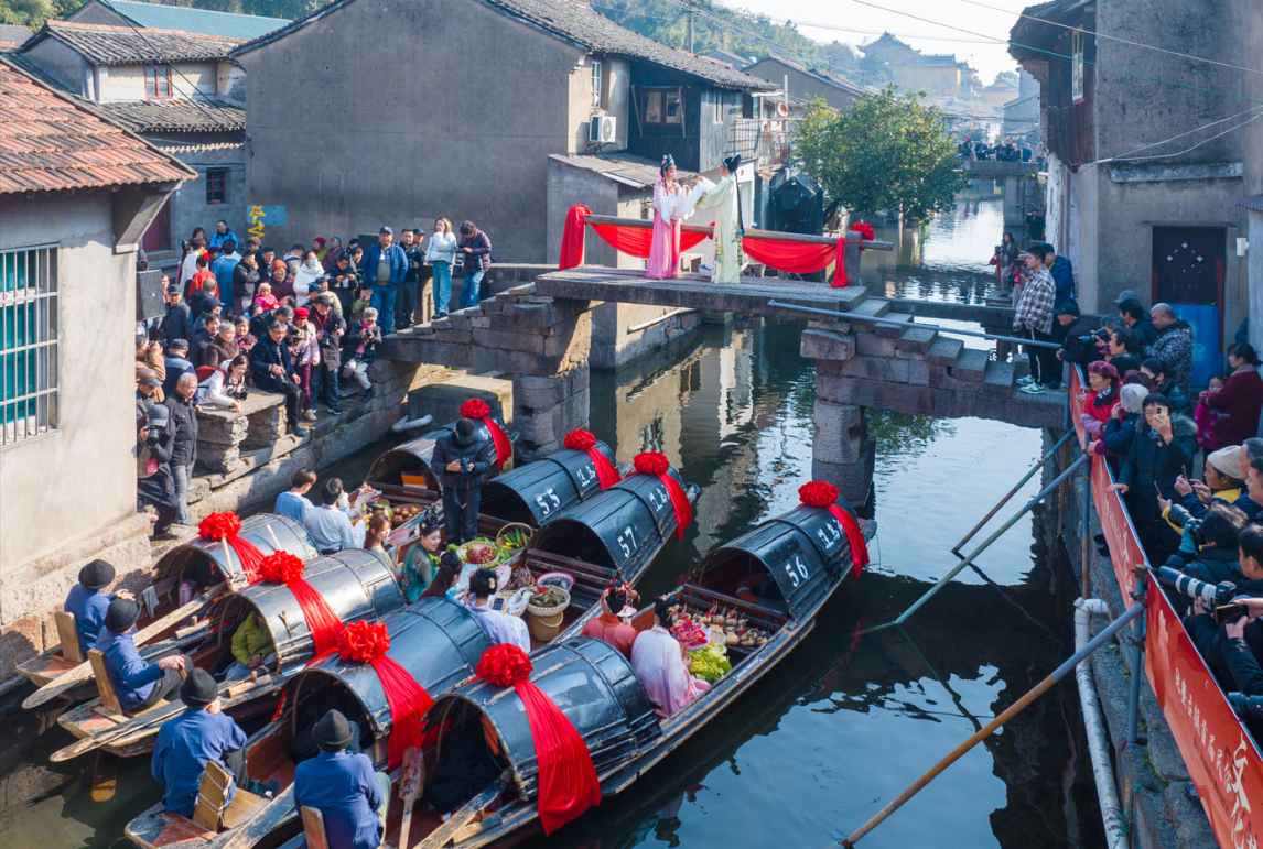 乌篷船满载年货,水乡社戏精彩上演。近日,浙江绍兴滨海新区斗门古镇民俗文化节暨斗门街道摄影大赛拉开帷幕,大赛以“千年古镇 三江斗门”为主题,吸引了200余名摄影爱好者参与,他们将镜头聚焦古镇的每一处风情,用光影定格千年古镇的独特魅力。