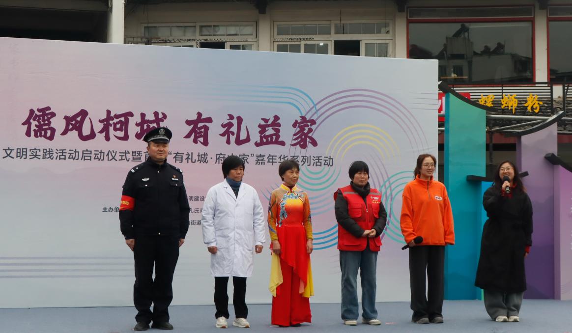 1月8日,“儒风柯城 有礼益家”文明实践活动启动仪式暨首届“有礼城·府山家”嘉年华系列活动在浙江省衢州市柯城区府山街道坊门街社区举行。来自全区各乡镇(街道)的百余名群众齐聚一堂,共同感受新时代文明风尚。