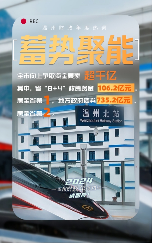 日前,温州市财政局(下文简称温州财政)公布2024-2025温州市政府“账本”。在刚过去的2024年,温州财政全面推进“四大振兴”,深入开展“十大攻坚”,硬核保障“强城行动”,全力推动积极的财政政策加力提效……全市一般公共预算收入632.6亿元,税占比80.0%,实现了财政收入量和质的稳步提升。一起通过6个“年度热词”读懂温州财政的2024。