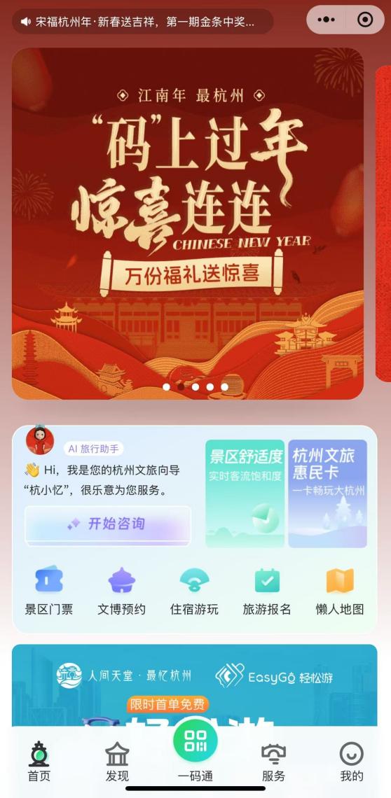有机会获得杭州洲际酒店、君悦酒店、中科久泰饭店等十余家酒店免费住一晚的名额,有机会参与德寿宫“AR眼镜”体验、相声评弹、脱口秀、剧本杀、钱塘江游船等精彩体验,更有精挑细选的文商旅点位推荐,堪称更懂上城的“大众点评”,“码”上陪你过新年、游杭州。