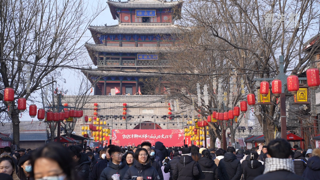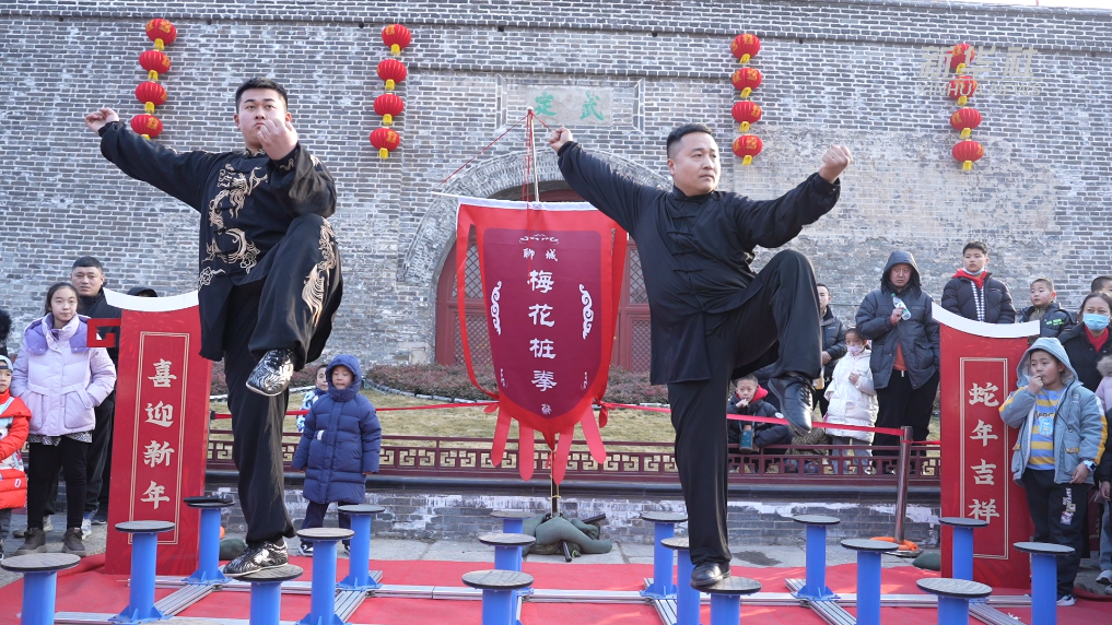 山东省聊城市水上古城景区处处张灯结彩,浓浓年味扑面而来。新春佳节,古城区举行“蛇舞新春——非遗民俗表演”活动。