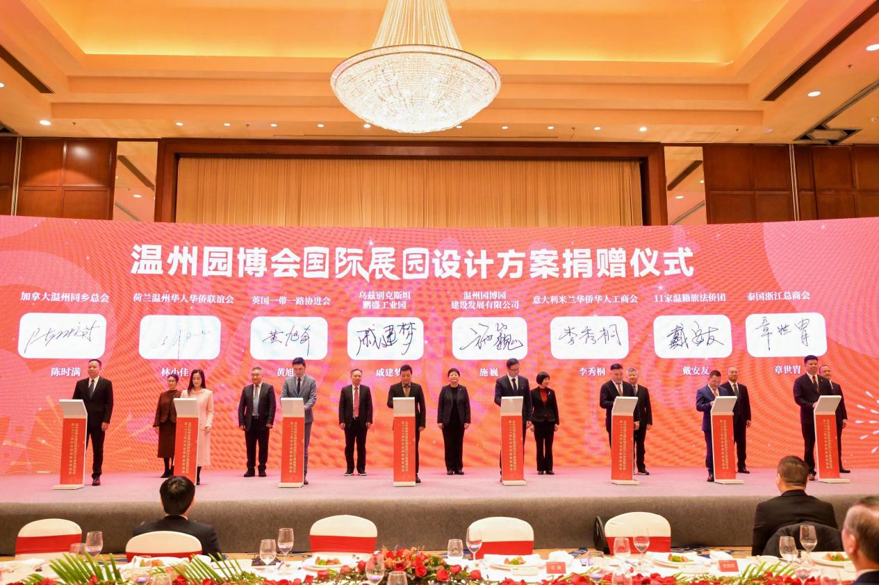 大会现场,来自乌兹别克斯坦、意大利、英国、法国、荷兰、泰国、加拿大等7家海外温籍侨团、侨商代表向温州园博会国际展园捐赠设计方案,以温州侨资源“集聚丰富、分布广泛”的优势,助力园博会展现更多的国际化元素、实现更好的国际交流合作,以此办出“温州味”和“国际范”。