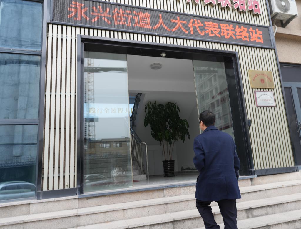 胡东方来到他任职企业所在的浙江省温州市龙湾区永兴街道人大代表联络站,参加每周一次的联络会,听取群众意见(2025年2月18日摄)。