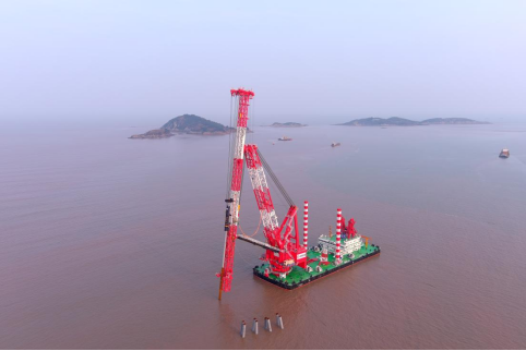 “有它助战,综合码头工程项目建设将按下快进键。”台州湾陆岛联动综合码头工程海上沉桩共1650根,最长86米,需穿透两层砂层。“有了这台打桩船,施打钢管桩数将由每日5根最高提升至每日10余根。预计年底前,有望完成水上沉桩作业施工。”项目负责人介绍。