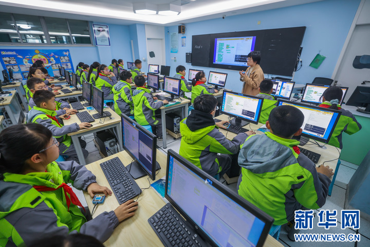 3月12日下午,在嘉兴市实验小学科技城校区的信息科技教室里,学生围绕“让教室更智能”项目展开方案设计和编程调试。该学校被评为全国人工智能教育示范基地。新华社记者 徐昱 摄