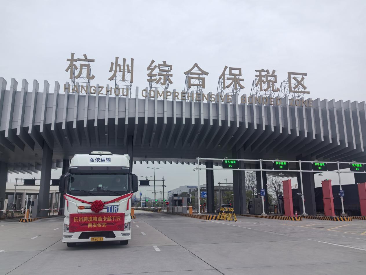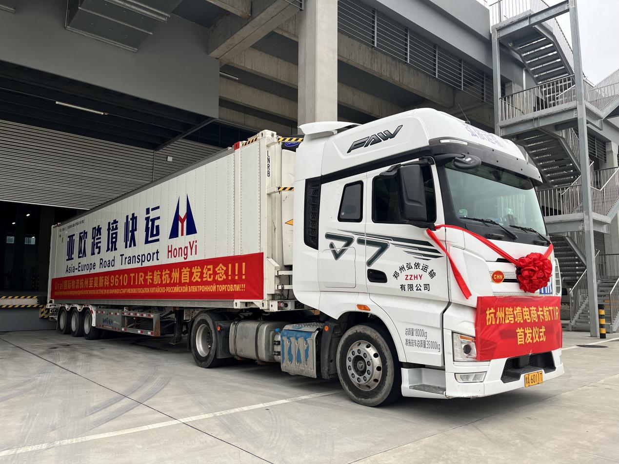 这是杭州首批“TIR+跨境电商”模式出口货物,是杭州跨境电商综试区“跨境电商新业态”与“TIR运输模式”相结合的首次探索,标志着钱塘跨境电商出口拥有了一条新通道。