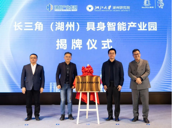 会上,湖州市副市长金凯,杭州云深处科技公司创始人、董事长朱秋国,浙大湖州研究院院长许超,湖州市产业集团董事长金宁共同为产业园揭牌。