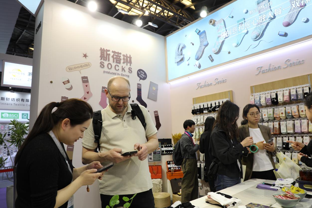 今年展会还吸引了更多的国外客户。来自加拿大的苏珊看中了多款时尚棉袜,在她看来,大唐设计的袜子风格前卫、品类齐全、性价比高,是市场上具有更强的竞争力。“看了之后对中国的市场比较有信心,尤其是在质量和产能上面”。苏珊说。
