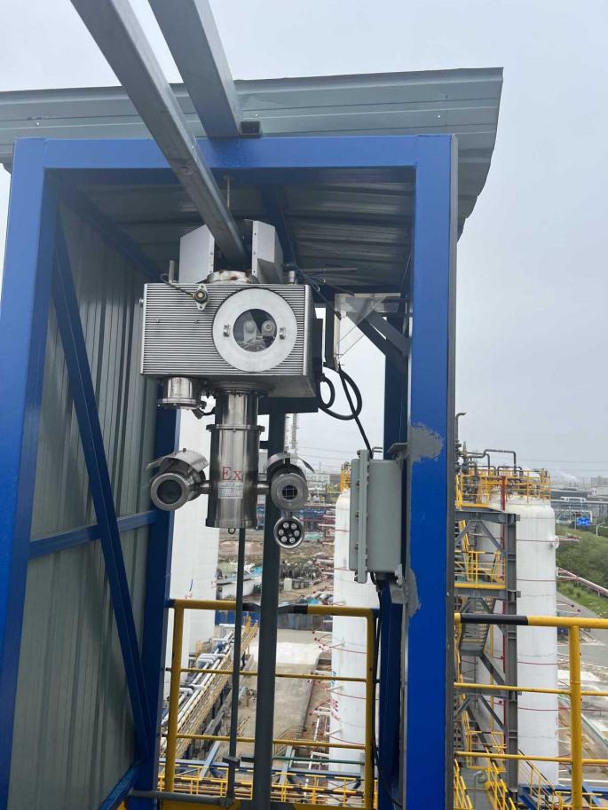 在厂区内,一名“空中安全卫士”吊轨机器人,引起了大家注意。它形似照相机,沿着空中轨道缓缓移动,每到一个作业点,其“眼睛”——可360°旋转的摄像头便“左顾右盼”,通过红外线扫描是否有泄漏,检测可燃气体等,并将数据实时传送至系统。