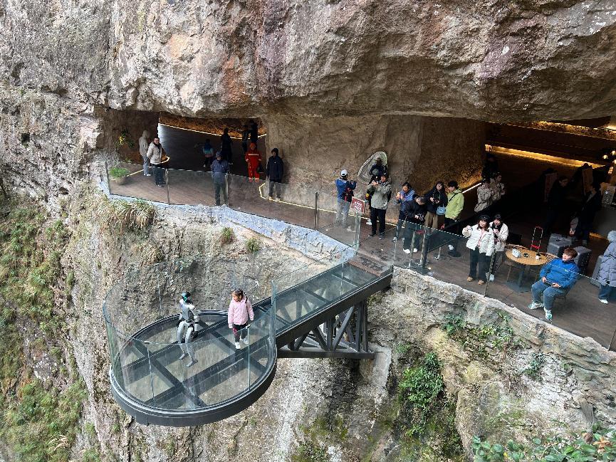 机器人走进悬空玻璃观景台。叶金涛 摄