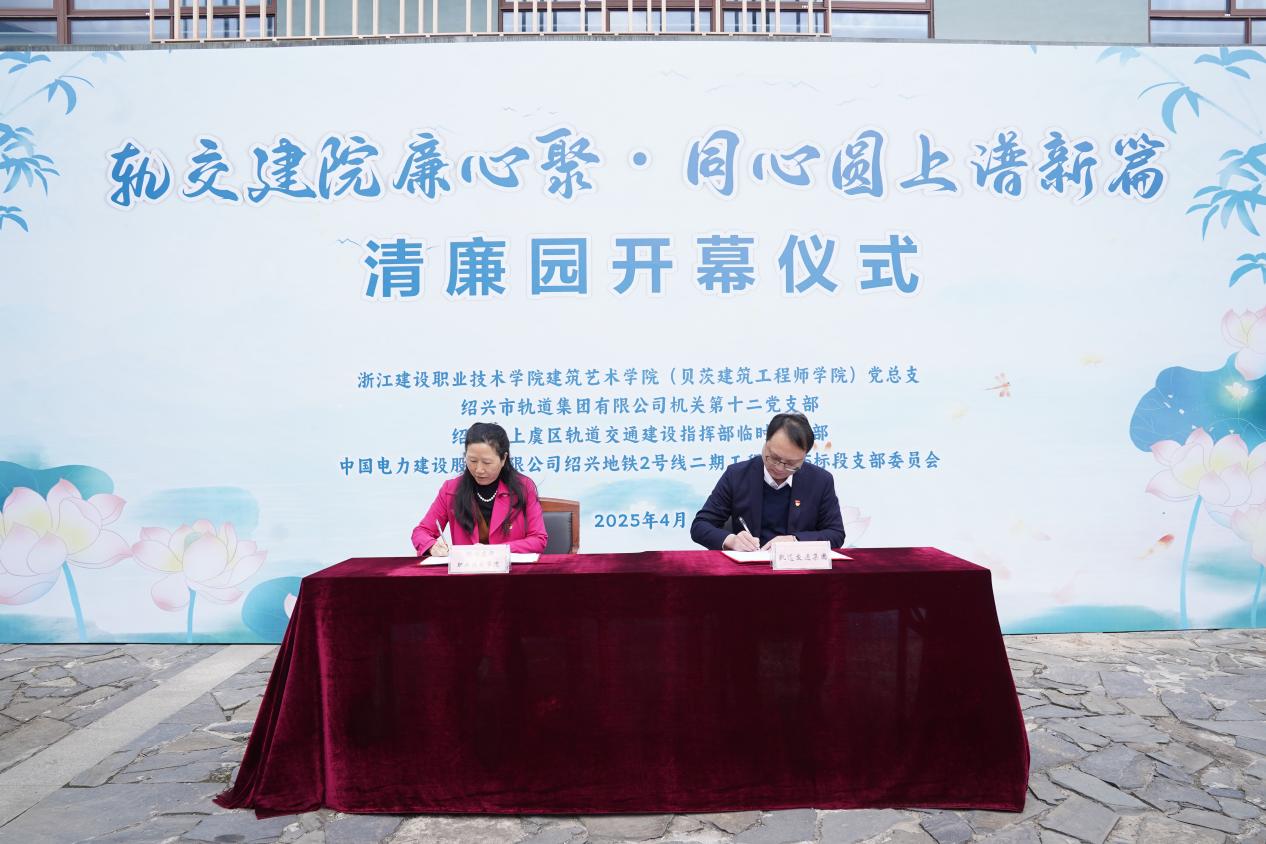 开园仪式上,浙江建设职业技术学院与绍兴市轨道交通集团共同签署《廉洁共建协议》,双方将在廉洁教育、风险防控等领域深化合作。同时,2025年绍兴市轨道交通集团廉洁文化建设年系列活动开启。该集团将开展“廉教第一课”活动,通过“课堂+工地”双轨培养模式提升员工及参建单位人员的廉洁意识和业务能力。廉洁辩论赛、书画摄影展等文化项目也将贯穿全年。