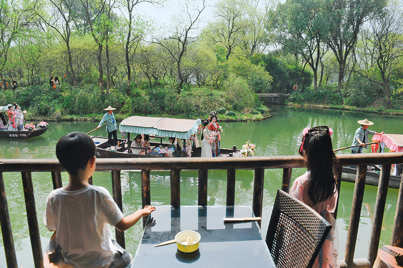 游人在西溪湿地游玩(2023年4月2日摄) 翁忻旸 摄