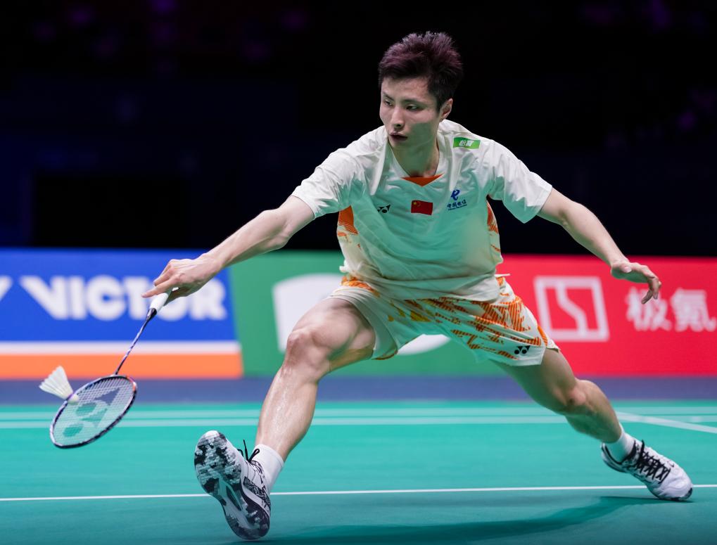 4月11日,石宇奇在比赛中回球。新华社记者 孙非 摄