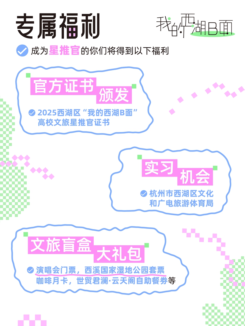 随着文旅深度融合发展,杭州市西湖区成为热门旅游目的地。为进一步强化西湖区文旅品牌的影响力,深度挖掘年轻群体在文旅传播领域的巨大潜力,西湖区特别策划2025西湖高校文旅星推官活动。