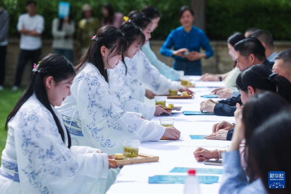 4月16日,人们在茶文化主题活动现场品尝春茶。