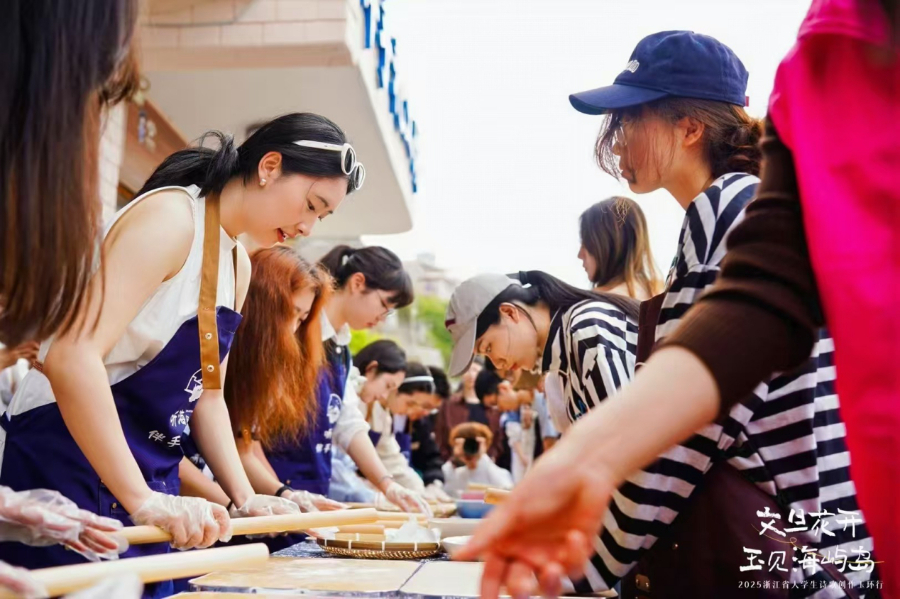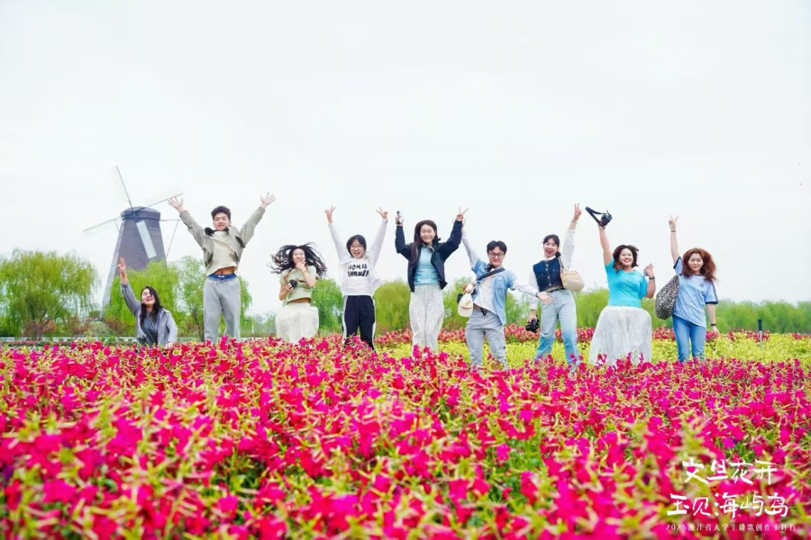 玉环作为海岛城市,135个岛屿风光迥异。此次行程中,鲜甜的玉环美食、旖旎的海岛风光、淳朴的人文风情都给同学们留下了深刻的印象。来自温州肯恩大学的刘燕茜每到一处都会惊呼又爱上了玉环一遍,“让我最感动的,是鸡山岛上开导览车的阿姨,她诉说着岛民们生生不息的日常,讲述了海岛人在‘奔跑中挑战极限’的精神”。行程虽然很短暂,但玉环的风土人情,深深印在了青春的记忆里,成为了一波又一波年轻人的文艺情愫的萌芽地。