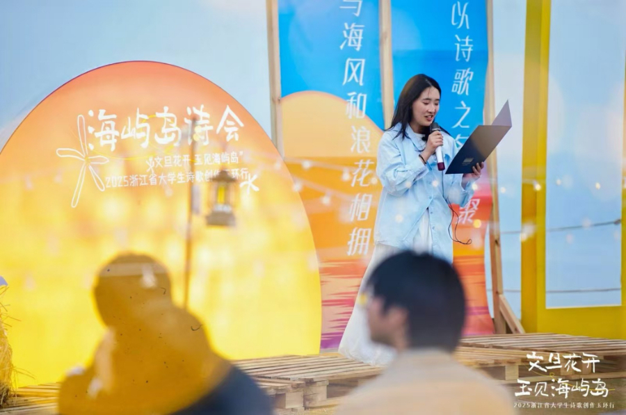 “面风吹海岛雨,千蟹泡泊沙浴”“化作波与浪,各自领风骚”“文旦花簌簌落进咸涩的风里,白瓷盏盛着月光”……在“海屿岛诗会”上,一首首关于玉环,关于青春的诗,伴着文旦花香,在摇曳的大风机下,在清澈的眼眸里,为这个春天留下最浪漫的注脚。