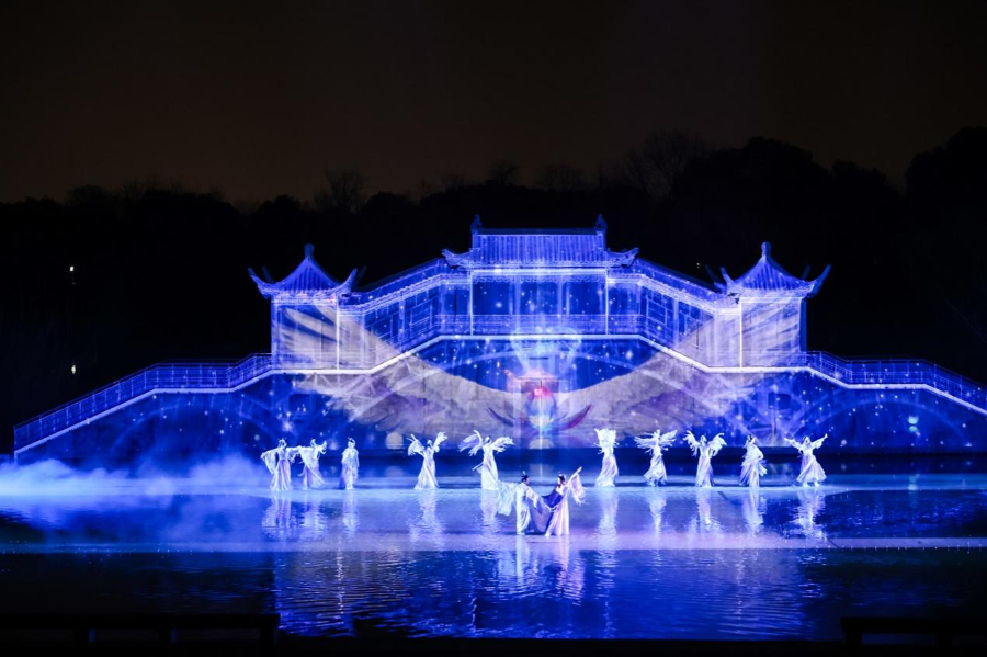 近日,由杭州《今夕共西溪》原班团队打造的《今夕东丽湖》在天津首演。这场跨越南北的文化IP联袂之作,以“科技+文艺”的创新表达,构建起杭州宋韵与天津津味文化对话的新范式,首场演出吸引逾千名游客沉浸体验。