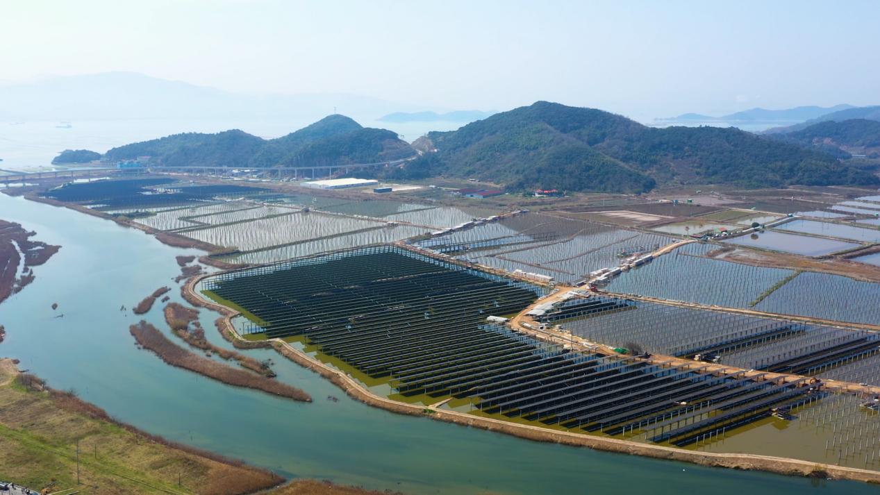 据悉,奉化裘村150兆瓦渔光互补光伏项目巧妙利用当地约2700亩的鱼(虾)塘资源,在不改变水域用途的前提下,实现渔业养殖与光伏发电的有机结合。配套工程将新建18基铁塔,线路总长度约6公里,让电力顺利接入电网侧变电站,预计2025年9月,这片鱼(虾)塘上将崛起一座现代化的绿色能源基地,源源不断地为奉化区输送清洁电能。届时,熠熠生辉的光伏板协同波光粼粼的鱼塘,即将奏响一曲经济发展与生态保护和谐共生的“渔光曲”。